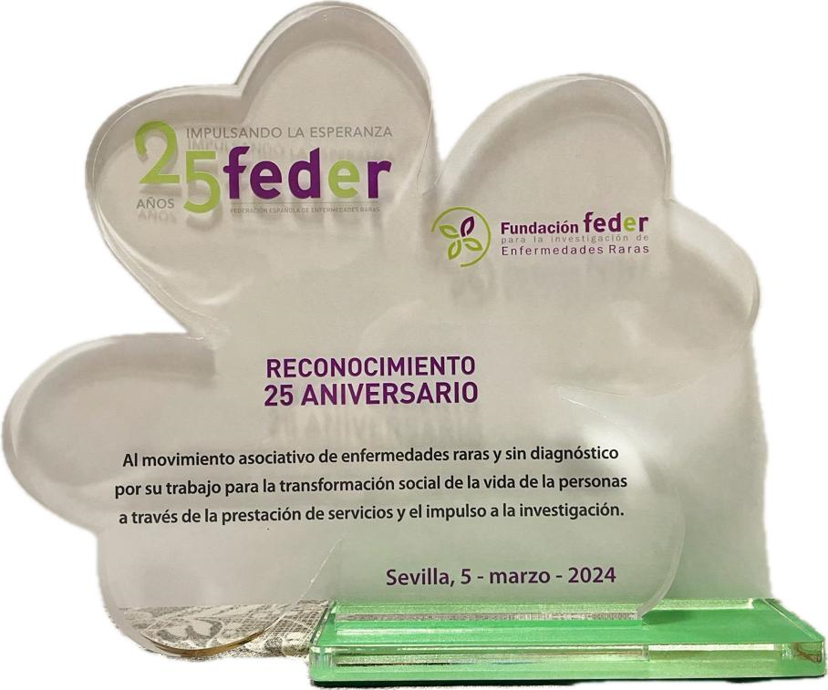 Para nuestra asociación es un honor recoger en nombre de las asociaciones que conforman FEDER un galardón que premia el trabajo por la investigación, el diagnóstico y el tratamiento de las EERR. Todos estamos muy orgullosos y contentos por el camino recorrido y el que nos queda por recorrer.