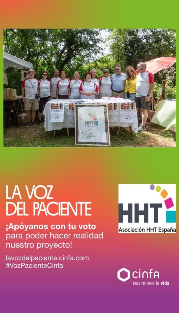 Nuestro proyecto “Mejora tu vida con la app de HHT. Seguimiento y control de la enfermedad” ha sido seleccionado junto a otras 400 asociaciones para participar en esta iniciativa solidaria de Laboratorios CINFA. Vota nuestro proyecto, para estar entre las 100 primeras y conseguir la dotación económica para financiarlo.